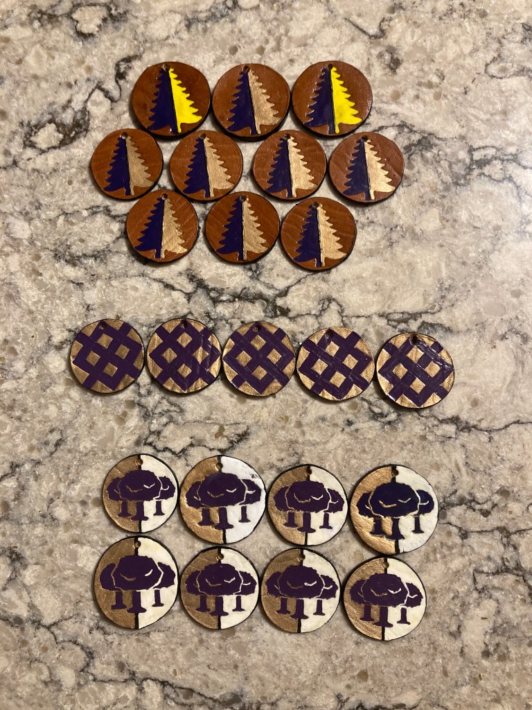 23 Medallions (10 Evergreen, 5 Purple Fret, and 8 Grove) given to their Royal Majesties Wigthegn and Neassa at their Tournament of Defense on April 14, 2024