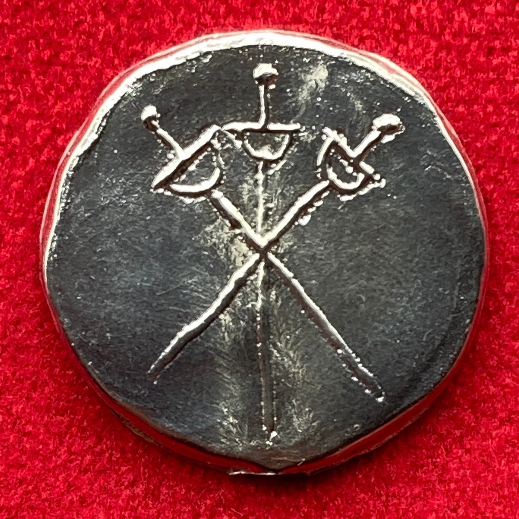 These coins were not designed with any particular historical designs in mind, but rather as an homage to Midrealm’s rapier fighters.